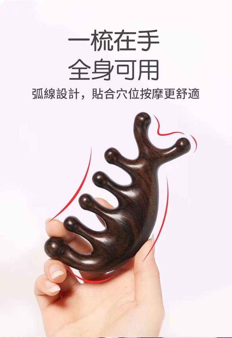 5分鐘前天然檀木美容經絡按摩梳 ◀頭臉按摩◀疏通經絡◀刮痧排毒 按摩穴位促進排毒,面部提拉緊緻 - 【緩解頭痛,按出健康】5入組HK$346