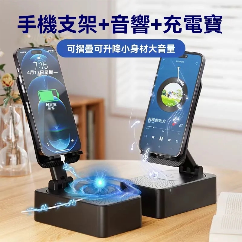 11分鐘前一機多用超省心懶人福音 三合一旋轉手機支架+快充行動電源+藍牙音響隨身多功能數碼神器 - 【品質之選】1入組-NT$998
