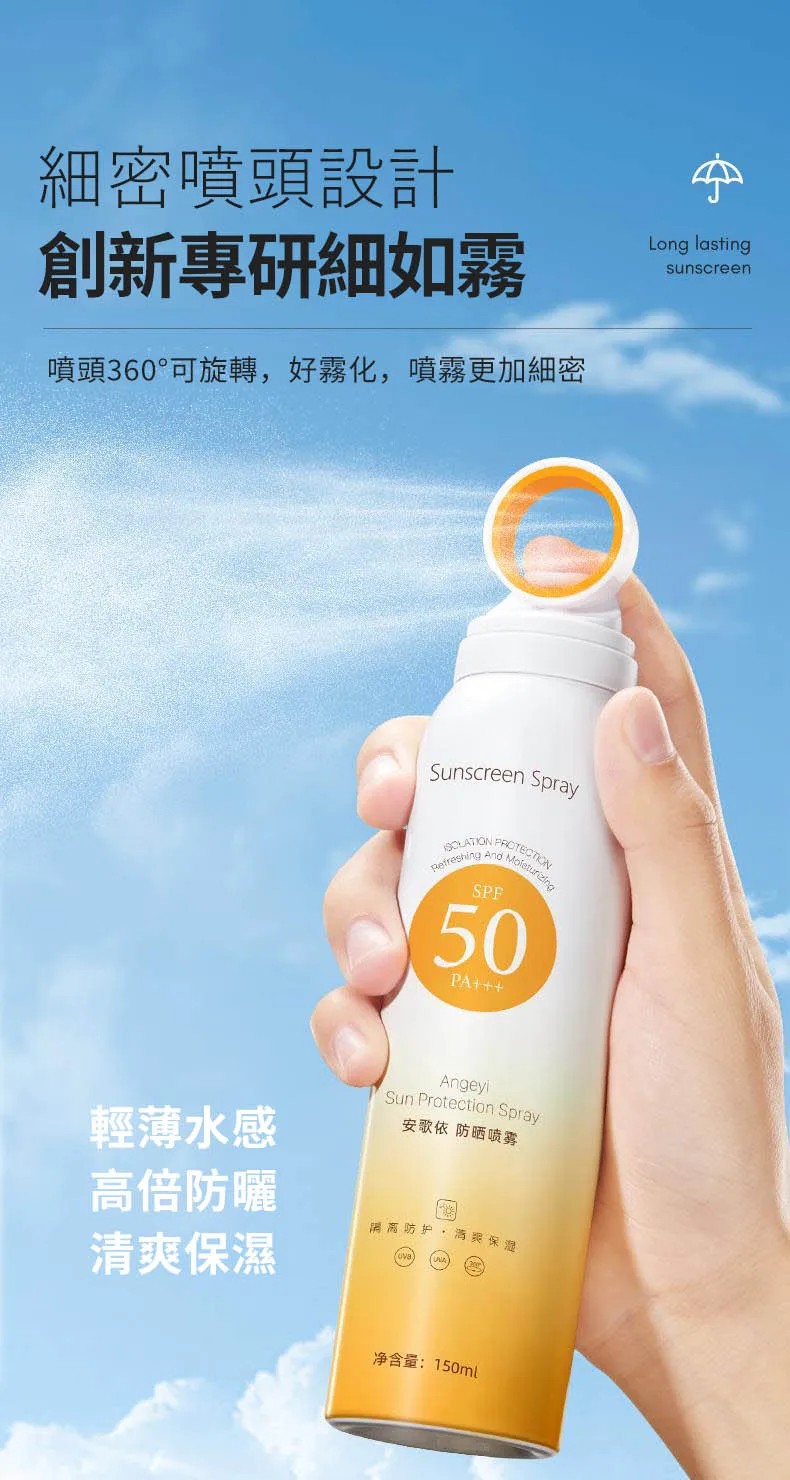 5分鐘前安歌依光圈防曬噴霧,細密噴頭設計 噴頭360°可旋轉自然膚惑,隔離防曬一瓶搞定 - 僅此一天「安歌依光圈防曬噴霧」8入72%用戶的選擇!NT$1598【限時免運】