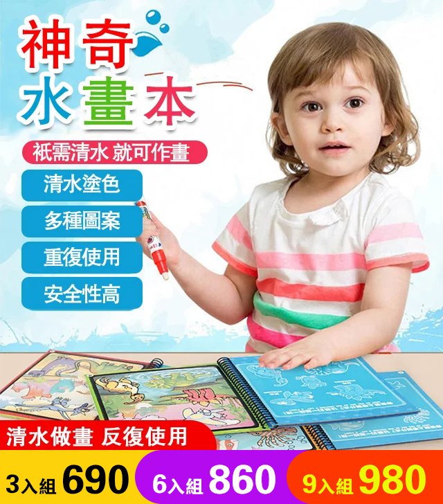 12分鐘前寶寶創意魔法塗鴉水畫本 - 六入組$860(每入143)